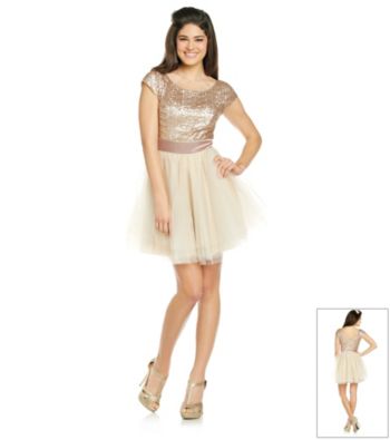 Image Name: Trixxi Juniors Dress Cap Sleeve Sequin Tulle Clothing